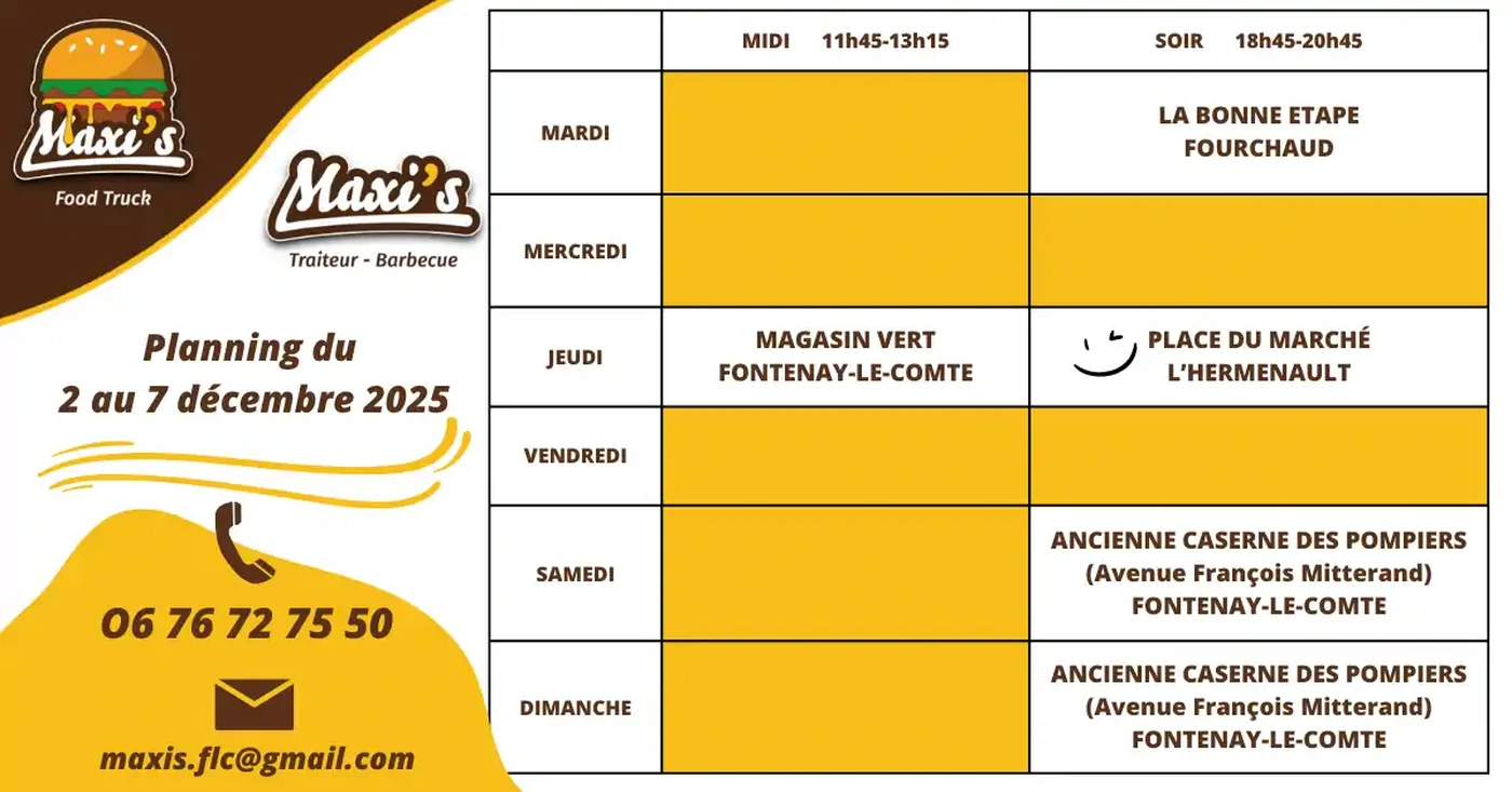 Maxi'S Food truck Burger et traiteur à Fontenay-le-Comte, Vendée