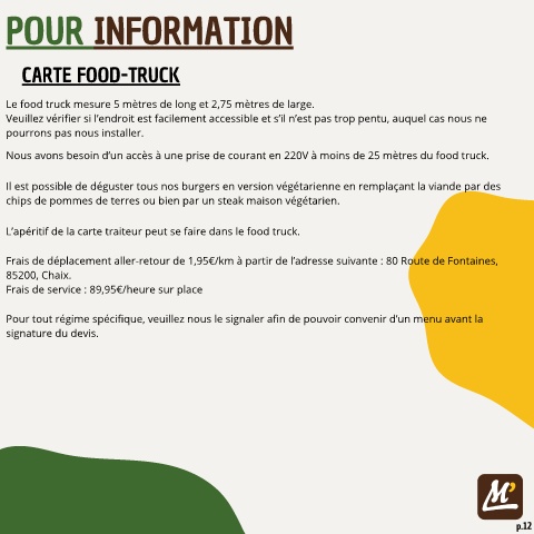 Nous avons besoin d’un accès à une prise de courant en 220V à moins de 25 mètres du food truck.